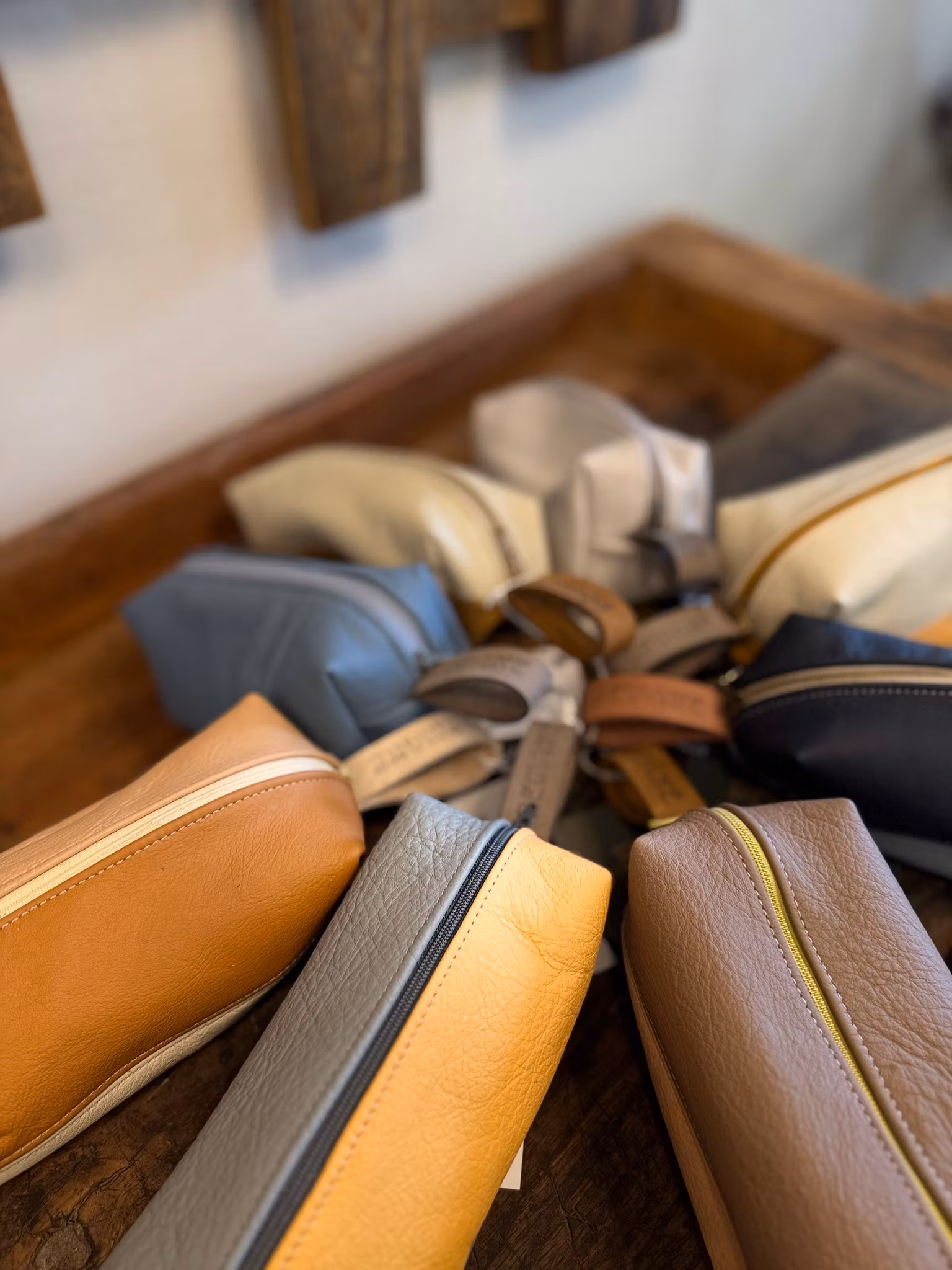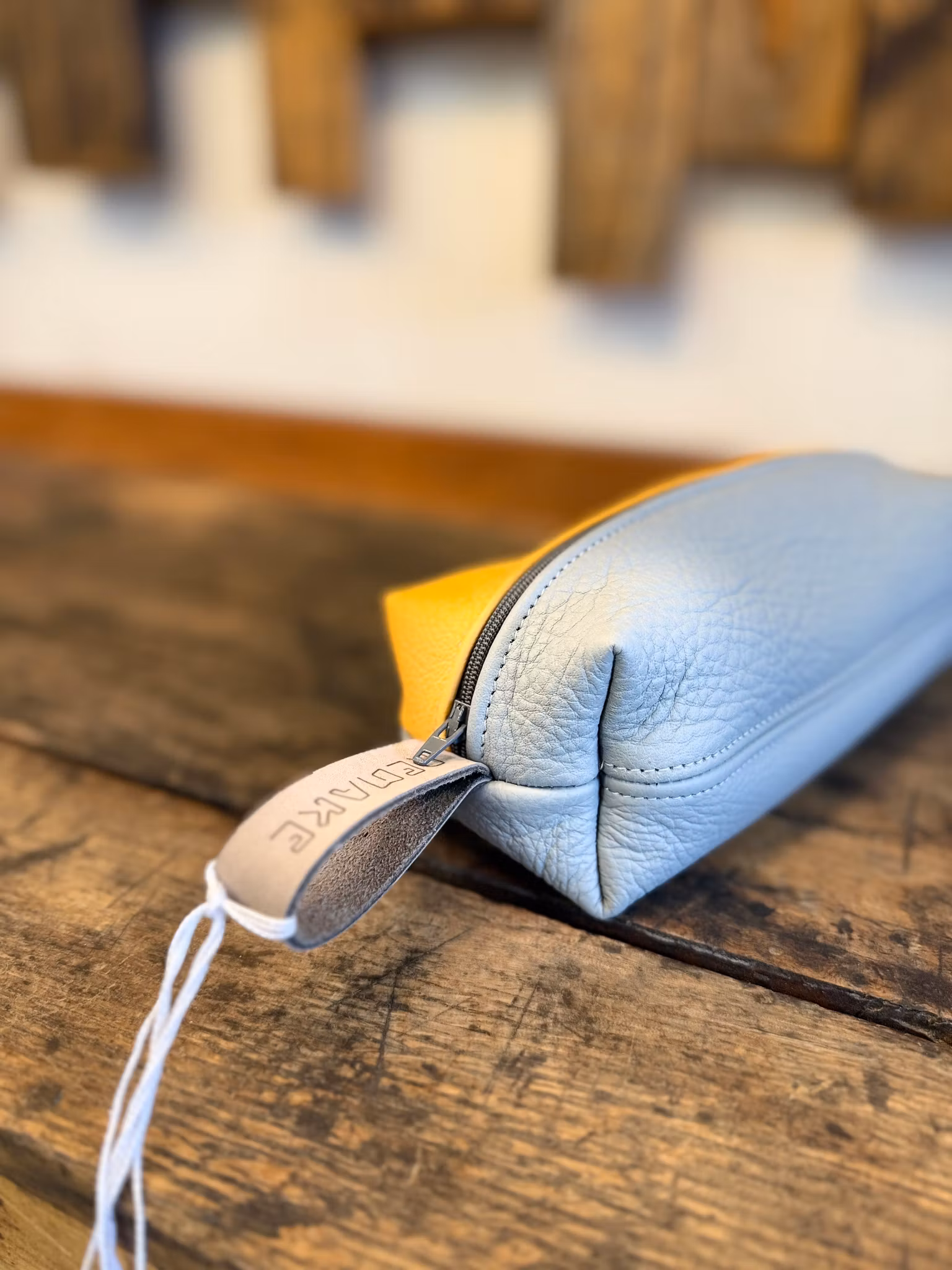 Handgjort pennfodral i äkta läder – varje exemplar är unikt. Ett stilrent och hållbart pennfodral som också fungerar perfekt som sminkväska eller förvaring i väskan. Varje fodral skiljer sig i färg och struktur, vilket gör att du alltid får ett helt eget original.